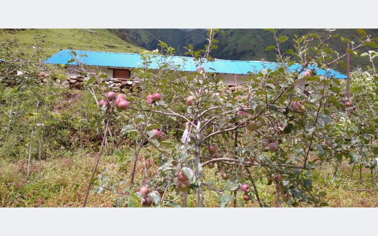 ढोरपाटन उपत्यकाका किसान रामबहादुर घर्तीले १८१ वटा बिरुवामध्ये केही बिरुवामा एक वर्षमै स्याउ फल्न थालेको बताउनुभयो ।