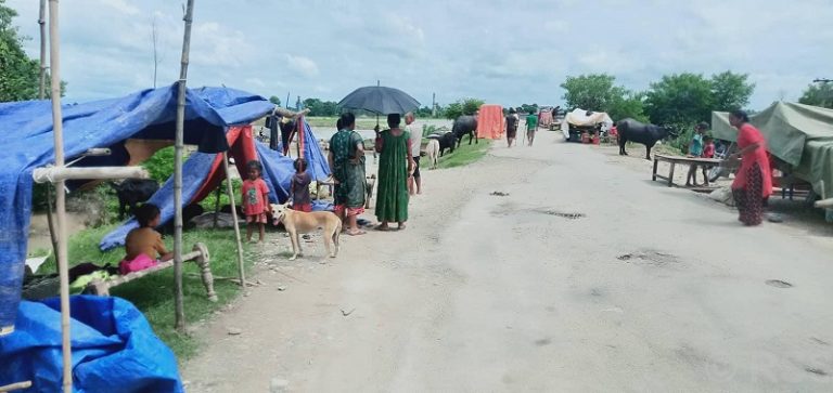 शनिबार विस्थापित हुनुभएकी तुल्सादेवी धमालाको परिवार पनि अझै घर फर्कन सकेको छैन । उहाँहरू पनि वस्तुभाउसहित सडकमा बस्नुभएको छ । विस्थापित नागरिकले गाइभैँसी सडकमा भोकै बाँध्नुपरेको छ । बाढीले धानबाली नष्ट गर्नुका साथै घासपातसमेत नष्ट भएको छ । यसले वस्तुभाउ पालकलाई बढी समस्या भएको छ ।