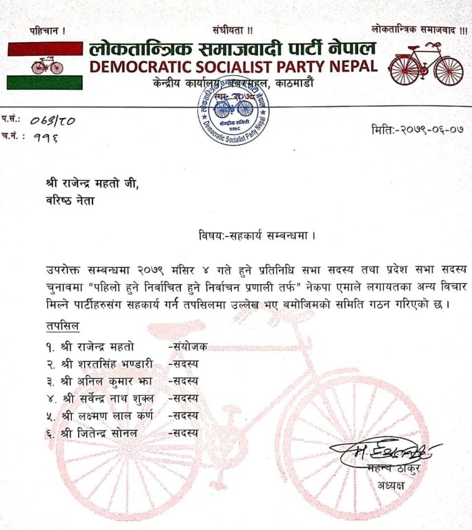 पार्टीका वरिष्ठ नेता राजेन्द्र महतोको संयोजकत्वमा ६ सदस्यीय वार्ता टोली गठन गरेको हो ।