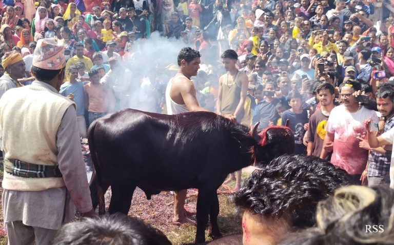 म्याग्दी – म्याग्दीको रघुगङ्गा गाउँपालिका-२ को भगवती कोत मन्दिरमा आज नवमीका दिन बलि चढाइने सरकारी राँगोको मार हान्न (काट्न) रु.तीन लाखको बोलकबोल भएको छ ।