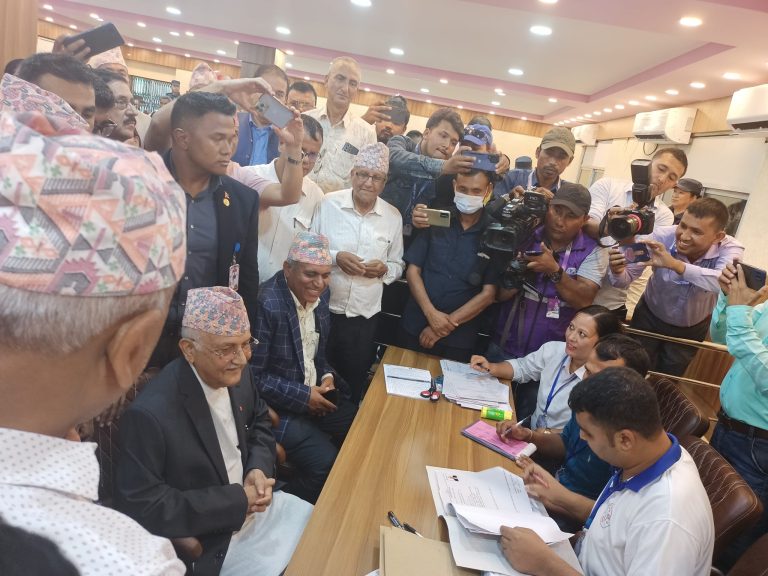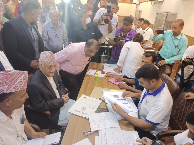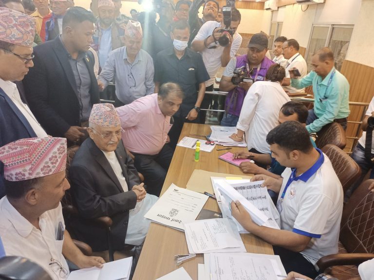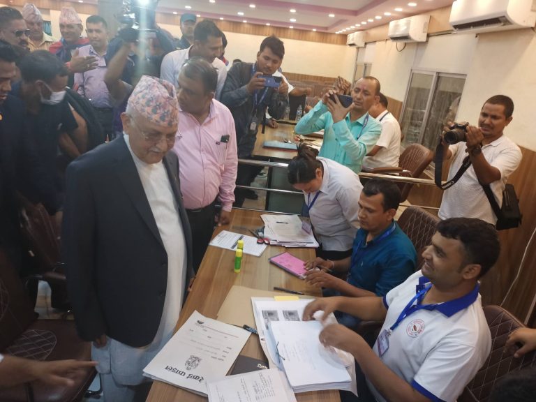 अध्यक्ष ओलीले आफ्नो निर्वाचन क्षेत्रमा रहेको निर्वाचन अधिकृत कार्यालयमा आफैं पुगेर उम्मेदवारी दर्ता गर्नुभएको हो । आफ्नो उम्मेदवारी दर्ताका लागि अध्यक्ष ओली हिजो नै झापा आइपुग्नुभएको हो ।