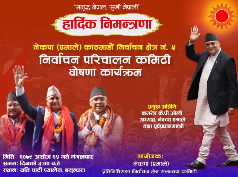काठमाडौं – नेकपा एमालेका वरिष्ठ उपाध्यक्ष ईश्वर पोखरेलले पार्टी अध्यक्ष केपी शर्मा ओली अस्वस्थ भएकाले निर्वाचन परिचालन कमिटी घोषणा कार्यक्रममा सहभागी हुन नसकेको बताउनु भएको छ ।