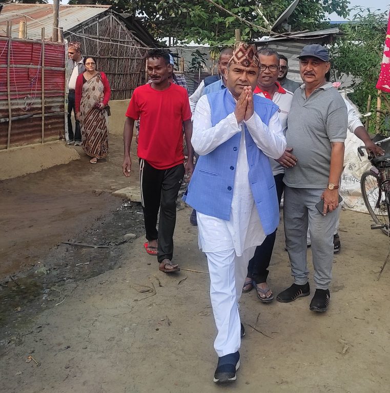 चुनावी अभियानका क्रममा क्षेत्रका जनताको घरदैलोमा पुग्दै नेता बस्नेतले यस क्षेत्रको विकास र यहाँका समस्या समाधानका निम्ति आफू दिनरात जनताकै माझमा रहेर हिड्ने प्रतिबद्धता व्यक्त गर्नुभएको छ ।