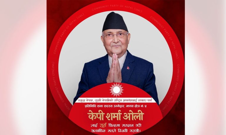 काठमाडौं – नेकपा एमालेका उम्मेदवारहरुले आजबाटै एकसाथ एकै प्रकारको प्रोफाइल तस्बिर राख्न सुरू गरेका छन् । अध्यक्ष केपी शर्मा ओलीले देशभरका सबै उम्मेदवारसँग जुम बैठक गरेर फेसबुकमा प्रोफाइल तस्बिर परिवर्तन गर्न निर्देशन दिनुभएको हो ।