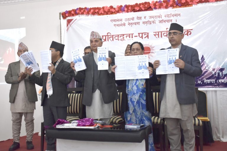 ‘स्थानीय तहको निर्वाचनमा एमालेद्वारा घोषणा–पत्र प्रतिबद्धता पत्रको कार्यान्वयन गर्न संघीय र प्रदेश सरकारका तर्फबाट स्थानीय तहका जनप्रतिनिधिलाई विशेष सहयोग र समन्वय गर्ने प्रतिबद्धता गर्दछौँ’, प्रतिबद्धता पत्रमा भनिएको छ । भौतिक संरचना निर्माण गर्दा भिन्न रुपले सक्षम नागरिक तथा बालबालिकामैत्री संरचनाहरु निर्माण गर्न पहलगरिने प्रतिबद्धता पत्रमा उल्लेख छ ।