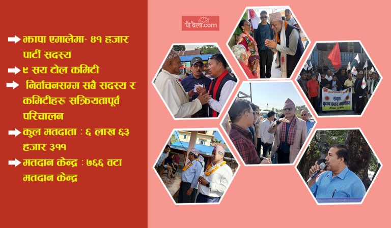 बिहान ७ बजेर ३० मिनेटमा एकै पटक आफ्नो टोलमा स्थानीय तथा केन्द्रिय नेतृत्व सहित उम्मेद्वारका फोटो सहितका ब्यानर बोकेर झण्डा उम्मेद्वार तथा पार्टीका गीत घोषणा पत्र सहित घर घरमा पुगेका छन् ।