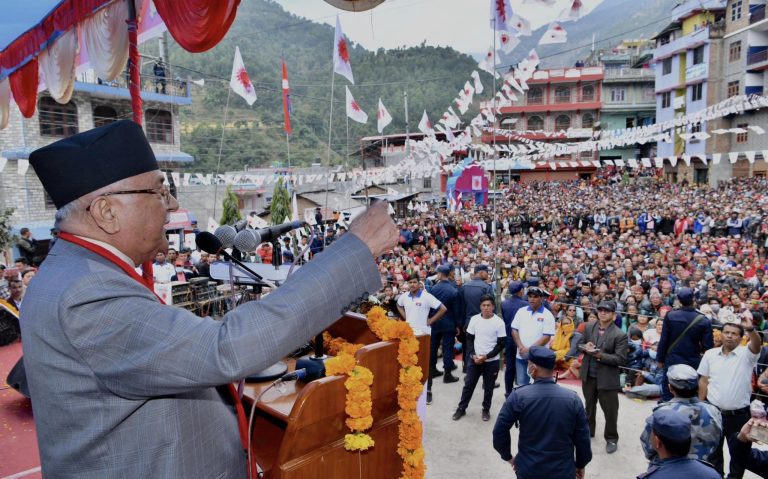 बागलुङ – नेकपा एमालेका अध्यक्ष केपी शर्मा ओली बागलुङको बुर्तिबाङ-२ मा आइपुग्नुभएको छ ।