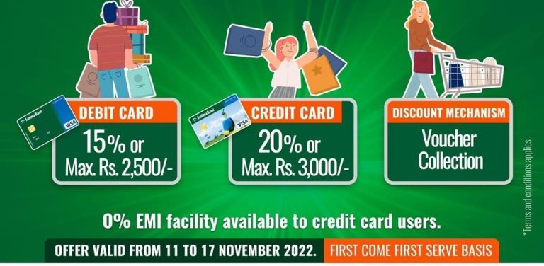 ग्राहकहरुले डेबिट कार्डबाट भुक्तानी गर्दा १५ प्रतिशत वा अधिकतम २ हजार पाँच सय रुपैयाँसम्मको छुट तथा क्रेडिट कार्डबाट भुक्तानी गर्दा २० प्रतिशत वा अधिकतम ३ हजार रुपैयाँसम्मको छुट प्राप्त गर्न सक्ने छन्।