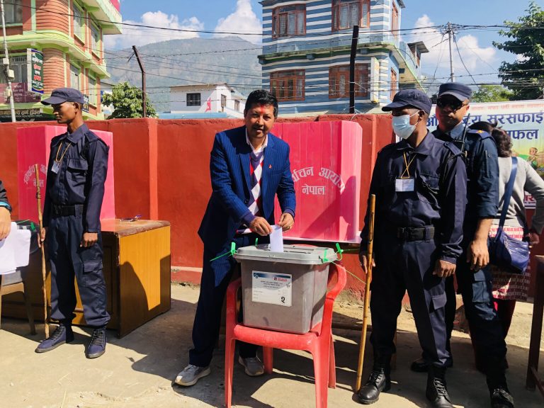 बागलुङको निर्वाचन क्षेत्र नम्बर १ प्रदेशसभा सदस्य (१) का उम्मेदवार हिराबहादुर केसीले नमूना मतदानको उद्घाटन गर्नुभयो।