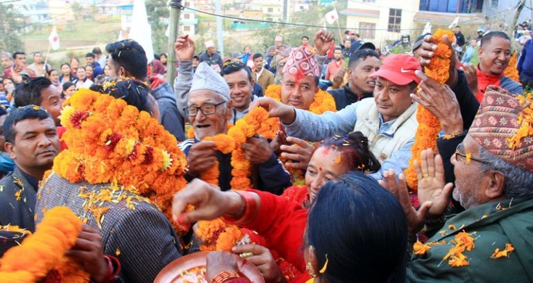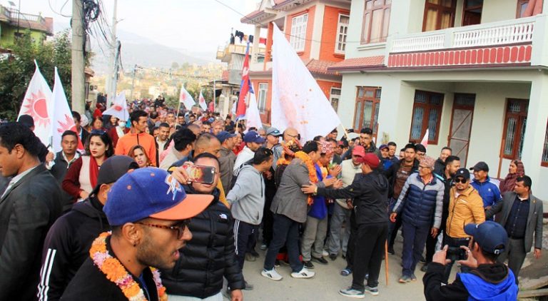 भक्तपुर-दिन प्रतिदिन आगामी मंसिर ४ गते हुने प्रदेश तथा प्रतिनिधिसभाको निर्वाचनको माहोल तातिरहेको समयमा भक्तपुर क्षेत्र नं. २ को माहोल एका एक नेकपा एमालेको पक्षमा जनलहर उलिएको छ । एमालेका उम्मेदवारलाई जिताउन भक्तपुर क्षेत्र नं. २ का जनता स्वतस्फुर्त रुपमा घरदैलो तथा सडकमा आएका छन् । जनता सडकमा उर्लिएर घरदैलो गरेको र उम्मेदवारलाई गरेको स्वागत हेर्दा लाग्छ, एमाले विजयी भइसक्यो, घोषणा गर्नलाई मात्र निर्वाचन पर्खनु परेको छ ।