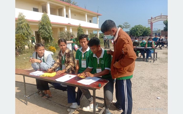 सो विद्यालयमा कक्षा १० को सामाजिक विषयमा भएको पाठ्यक्रमअनुसार नमूना मतदान प्रक्रिया सुरु गरिएको हो । निर्वाचनमा सहभागी उम्मेदवार, मतदाता, निर्वाचन अधिकृत, मतदान अधिकृत, सुरक्षाकर्मी, स्वयंसेवकसहित आवश्यक सबै प्रक्रिया पूरा गरेर नमूना मतदान पूरा गरेको विद्यालयका प्रधानाध्यापक धर्मराज शर्माले बताउनुभयो ।