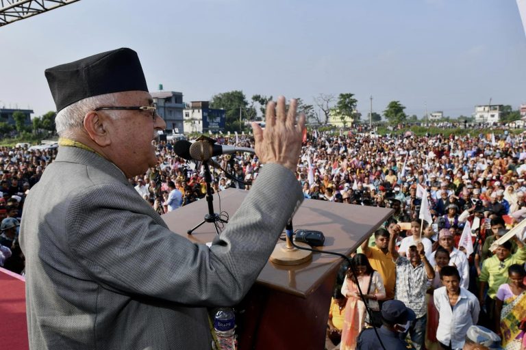 झापा क्षेत्र-१ अन्तर्गत मेची नगरमा आयोजित चुनावी सभालाई बिहीबार दिउँसो सम्बोधन गर्दै ओलीले मङ्सिर ४ को निर्वाचनले देशको भाग्य र भविष्य निर्माण गर्नुपर्ने बताउनुभयो । निर्वाचन देश जोगाउने शक्ति आउने कि स्वार्थ गठबन्धन आउने भन्नेमा केन्द्रित रहेको बताउनुभयो । ‘यो निर्णय गर्नुपर्ने छ’, ओलीले भन्नुभयो ।