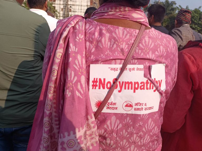 झापा – दुई पटक संसदीय चुनाव हारेका विश्वप्रकाश शर्माले आफूलाई सहानुभतीको भोट दिन भन्दै मतदाता माझ पुगेपछि एमालेले ‘नो सिम्प्याथी’ अभियान सञ्चालन गरेको छ ।