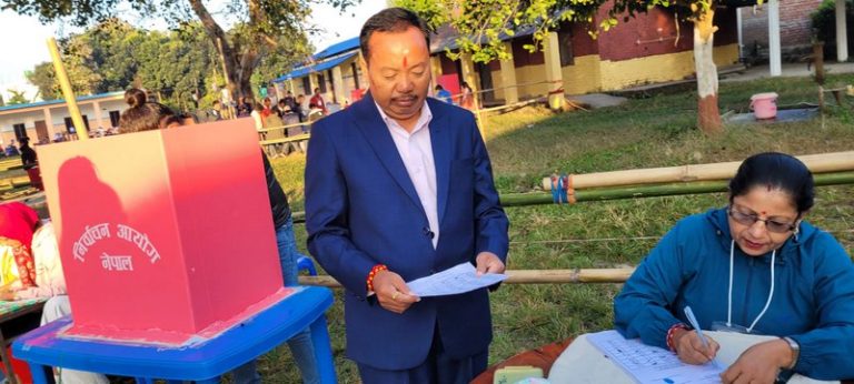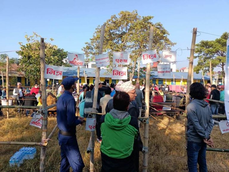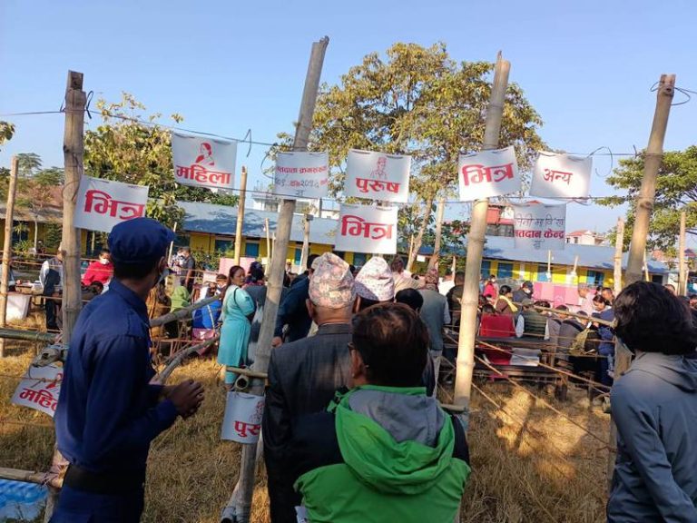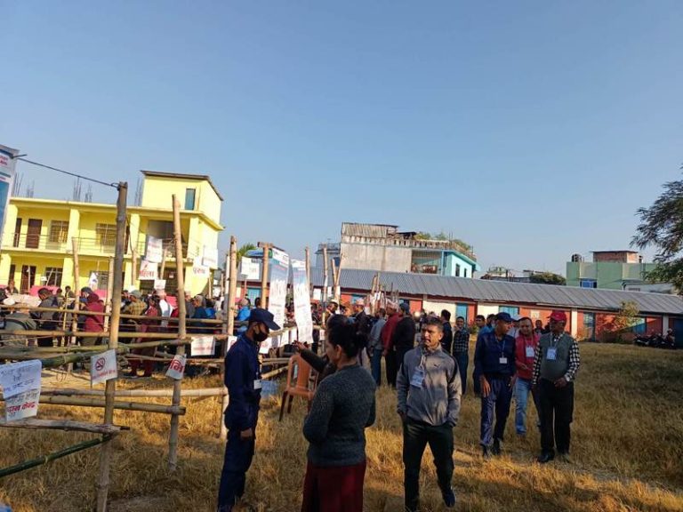 बिहानैदेखि मतदाता परिचयपत्रसहित मत खसाल्नका लागि मतदान केन्द्रमा पुगेका हुन् । आइतबार बिहान ७ बजेदेखि सुरु भ्एको मतदान साँझ ५ बजेसम्म जारी रहनेछ ।