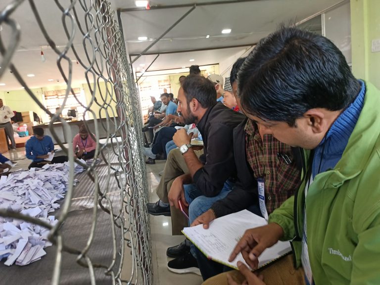 मतगणना स्थलमा नेकपा एमालेका कार्यकर्ताको उल्लेख्य उपस्थिती छ । अन्य पार्टीका कार्यकर्ता कमै मात्र उपस्थित छन् ।