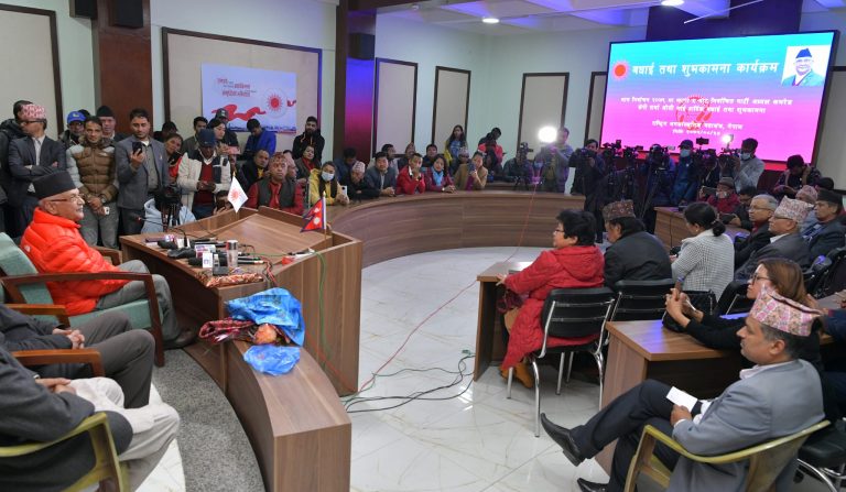 काठमाडौँ – नेकपा एमालेका अध्यक्ष केपी शर्मा ओलीलाई प्रतिनिधिसभामा पुन: निर्वाचित हुनुभएकोमा एमालेको भ्रातृ संगठन राष्ट्रिय जनसांस्कृतिक मञ्चले स्वस्ति शान्ति वाचन गराउँदै शुभकामना तथा बधाई दिएको छ ।