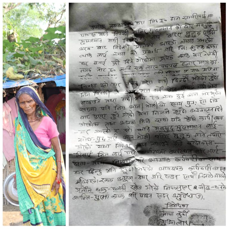 शान्ति, सुरक्षा र आवश्यक कारवाहीका लागि माया कुर्मी, गुडिया लोध र पंचम हरिजनसमेतले जिल्ला प्रशासन कार्यालय रुपन्देहीमा निवेदन दिनुभएको छ । मकसुद मुसलमानले बाहिर मुलुक सउदी अरबबाट विदेशी प्रोजेक्ट आएको र गरिब परिवारका लागि निःशुल्क घर बनाइदिने भन्दै जनही एक लाख ५५ हजारका दरले असुल गरेको निवेदनमा उल्लेख छ ।