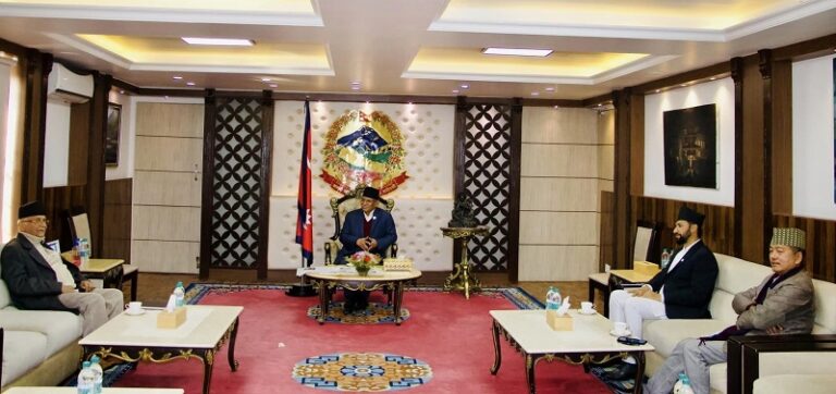 आज बसेको बैठकमा प्रधानमन्त्री पुष्पकमल दाहाल प्रचण्ड, एमाले अध्यक्ष केपी शर्मा ओली, राप्रपा अध्यक्ष राजेन्द्र लिङदेन र लामिछाने सहभागी हुनुहुन्थ्यो ।