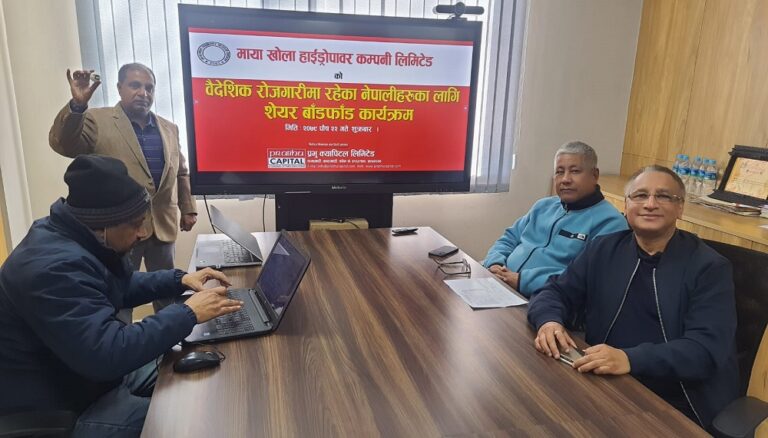 काठमाडौं – प्रभु क्यापिटल लिमिटेडको निष्काशन तथा बिक्री प्रबन्धकत्वमा निष्काशन भएको माया खोला हाइड्रोपावर कम्पनी लिमिटेडको सेयर बाँडफाँट गरिएको छ।