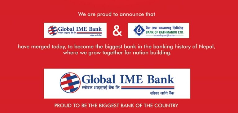 ग्लोबल आईएमई बैङ्कले बैङ्क अफ काठमाण्डूलाई मर्ज गरेपछि मुलुककै ठूलो बैङ्क बन्दै छ । मर्जरपश्चात् बैङ्कको कुल पुँजी ५७ अर्ब रुपियाँ चुक्तापुँजी ३५.७७ अर्ब रुपियाँ, कुल निक्षेप चार खर्ब, कुल कर्जा तीन खर्ब ७९ अर्ब रुपियाँभन्दा बढी पुग्ने भएको बैङ्कले जनाएको छ ।