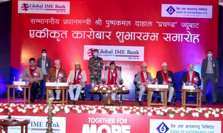 काठमाडौं-ग्लोबल आईएमई बैंक र बैंक अफ काठमाण्डूको एकीकृत कारोबार सरु भएको छ । प्रधानमन्त्री पुष्पकमल दाहाल प्रचण्ड, नेपाल राष्ट्र बैंकका गभर्नर महाप्रसाद अधिकारी लगायतको उपस्थितिमा एकीकृत कारोबार सुरु भएको हो ।