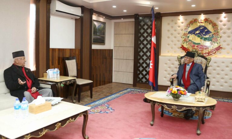 काठमाडौं -मन्त्रिपरिषद विस्तार मन्त्रालय भागवण्डाका विषयमा प्रधानमन्त्री पुष्पकमल दाहाल र नेकपा एमालेका अध्यक्ष केपी शर्मा ओलीका बीच बालुवाटारमा छलफल जारी रहेको छ ।