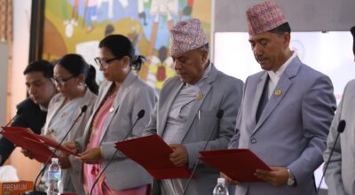 काठमाडौँ – नवनियुक्त मन्त्रीहरुले शपथ लिनुभएको छ। नवनियुक्त मन्त्रीहरूले शपथ ग्रहण गर्नुभएको हो । राष्ट्रपति कार्यालयमा आयोजित कार्यक्रममा उहाँहरूले शपथ लिनुभएको हो।