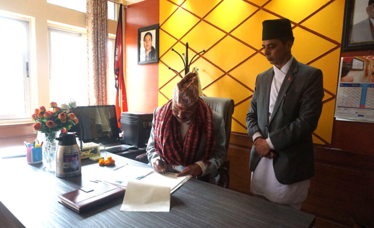 नवनियुक्त मन्त्रीलाई स्वागत अभिवादन गर्दै सचिव अर्यालले मन्त्रालयको साथ, सहयोग र समन्वयन हुने विश्वास दिलाउनुभयो । उहाँले भन्नुभयो, ‘मन्त्रीज्यूको नेतृत्वदायी भूमिकाले मन्त्रालयका लागि मात्र नभइ समग्र राष्ट्रिय स्वाधिनता, राष्ट्रिय एकता र राष्ट्रको हितका लागि महत्वपूर्ण सावित हुनेछ। राष्ट्रको सम्मुन्नति र राष्ट्रितका पक्षमा अझ बढी योगदान पुग्नेछ ।’