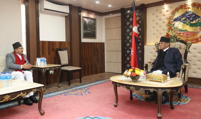 काठमाडौं । प्रधानमन्त्री पुष्पकमल दाहाल ‘प्रचण्ड’ र प्रतिनिधि सभाका सभामुख देवराज घिमिरेबीच सोमबार बिहान भेटवार्ता भएको छ । प्रधानमन्त्री निवास बालुवाटारमा भएको भेटघाटमा विभिन्न समसामायिक विषयमा छलफल भएको रहेको प्रधानमन्त्रीको सचिवालयले जानकारी दिएको छ ।