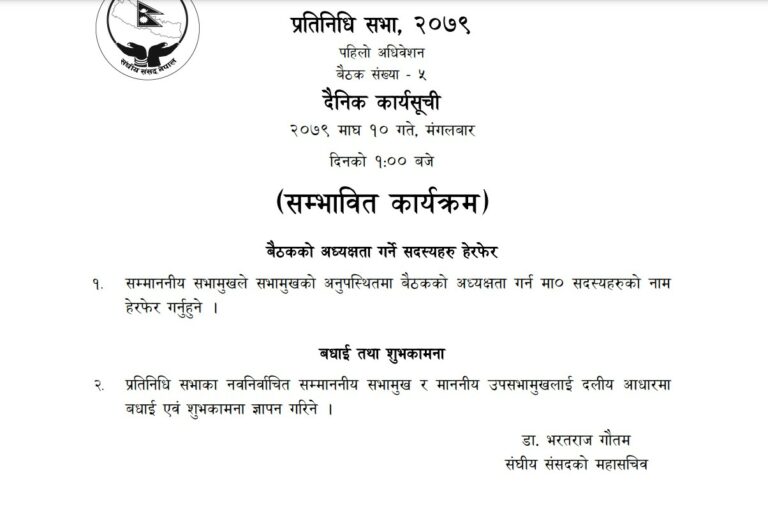 काठमाडौं । प्रतिनिधि सभाको बैठक आज बस्दैछ ।