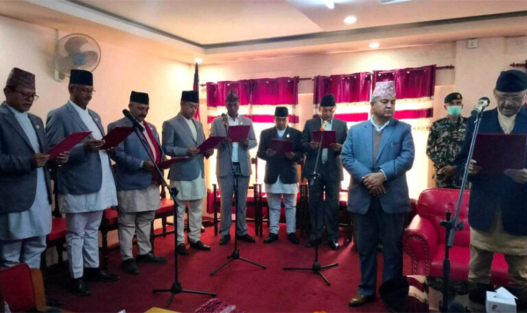प्रदेश प्रमुख शर्माले आन्तरिक मामिला तथा कानुन मन्त्रालय-गंगा नारायण श्रेष्ठ, भौतिक पूर्वाधार विकास मन्त्रालय-युवराज दुलाल ‘शरद’, सामाजिक विकास मन्त्रालय-कुमारी मोक्तान, कृषि तथा पशुपन्छी विकास मन्त्रालय-केशवप्रसाद पोखरेल, श्रम रोजगार तथा यातायात मन्त्रालय-एकालाल श्रेष्ठ, स्वास्थ्य मन्त्रालय-रामेश्वर श्रेष्ठ, पर्यटन, उद्योग तथा सहकारी मन्त्रालय-डम्बर बहादुर तामाङ र वन तथा वातावरण मन्त्रालय-राजु बिष्टलाई शपथ ग्रहण गराउनु भएको हो ।