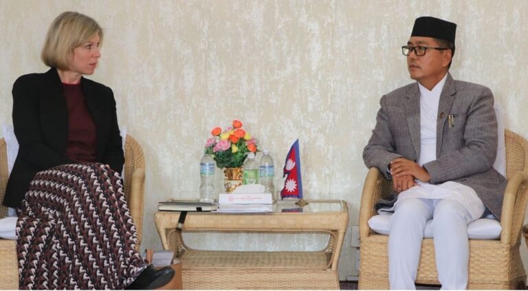 काठमाडौं – उपप्रधान एवम् ऊर्जा, जलस्रोत तथा सिँचाइ मन्त्री राजेन्द्रप्रसाद लिङ्देन र नेपालका लागि संयुक्त अधिराज्य बेलायतका राजदूत निकोला पोलिटबीच भेटवार्ता भएको छ ।