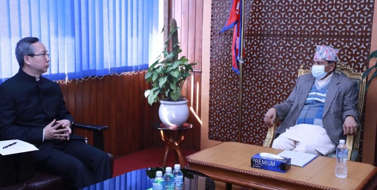 काठमाडौँ-उपप्रधानमन्त्री एवं भौतिक पूर्वाधार तथा यातायातमन्त्री नारायणकाजी श्रेष्ठसँग नेपालका लागि चिनियाँ राजदूत चेन सोङले शिष्टाचार भेटवार्ता गर्नुभएको छ ।