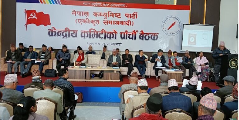 काठमाडौं – नेकपा एकीकृत समाजवादीको पाँचौं केन्द्रीय कमिटीको बैठकमा अध्यक्ष माधवकुमार नेपालले राजनीतिक प्रतिवेदन प्रस्तुत गर्नुभएको छ।