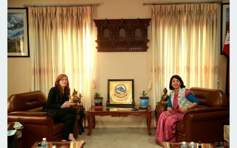 काठमाडौँ – परराष्ट्रमन्त्री डा.विमला राई पौड्यालसँग अन्तर्राष्ट्रिय विकासका लागि अमेरिकी नियोग (युएसएआइडी)का प्रशासक सामन्था पावरले भेटवार्ता गर्नुभएको छ ।