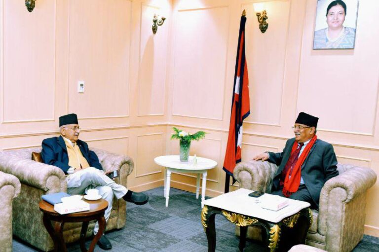 प्रधानमन्त्री प्रचण्ड र अध्यक्ष ओलीबीचको भेटमा समसामयिक राजनीतिक विषयमा छलफल भएको प्रधानमन्त्रीको निजी सचिवालयले जनाएको छ।