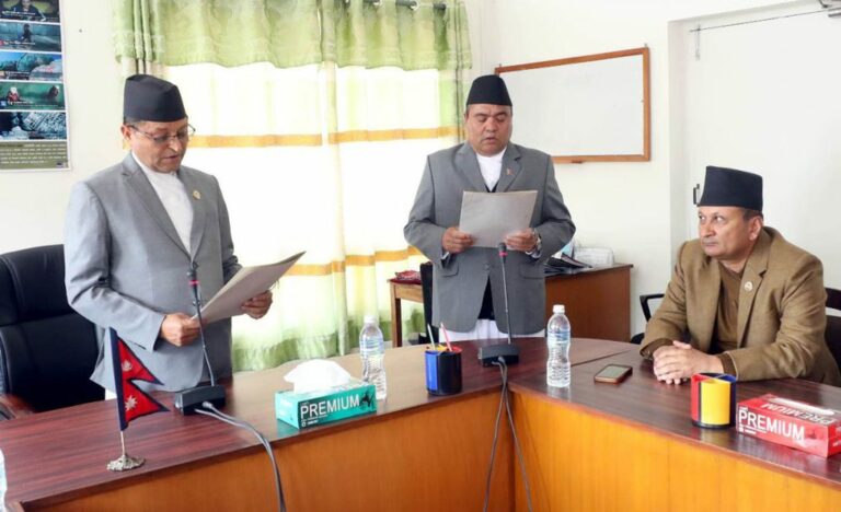 काठमाडौं – नवनिर्वाचित राष्ट्रिय सभा सदस्य कुमार दसौंदीले शपथ लिनुभएको छ । उहाँलाई राष्ट्रिय सभाका अध्यक्ष गणेशप्रसाद तिमिल्सिनाले पद तथा गोपनीयताको शपथ गराउनु भएको हो ।