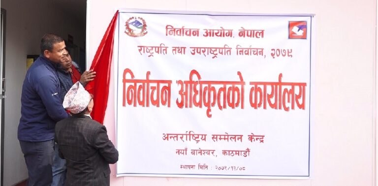 काठमाडौं – राष्ट्रपति तथा उपराष्ट्रपतिको निर्वाचनका लागि नयाँ बानेश्वरस्थित अन्तर्राष्ट्रिय सम्मेलन केन्द्रको परिसरमा आजदेखि निर्वाचन अधिकृतको कार्यालय सञ्चालनमा आएको छ।