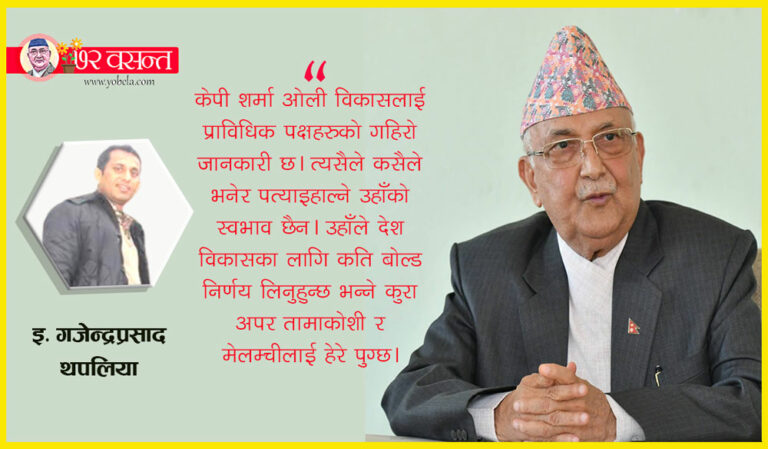 केपी शर्मा ओली प्रधानमन्त्री भएका बेला म उहाँको विकास विज्ञको रुपमा कार्यरत थिएँ । यो जिम्मेवारीमा रहेका कारणले मैले विकासका ठूला परियोजनाहरुको अवस्था के छ ? के कसरी सञ्चालन भइरहेका छन् ? कुनै परियोजनाका कुनै अवरोधले रोकिएका छन् कि वा उद्घाटनको समयमा छन् कि भनेर जानकारी लिनु र प्रधानमन्त्रीलाई नियमित जानकारी गराउनु मेरो जिम्मेवारी हुन्थ्यो।