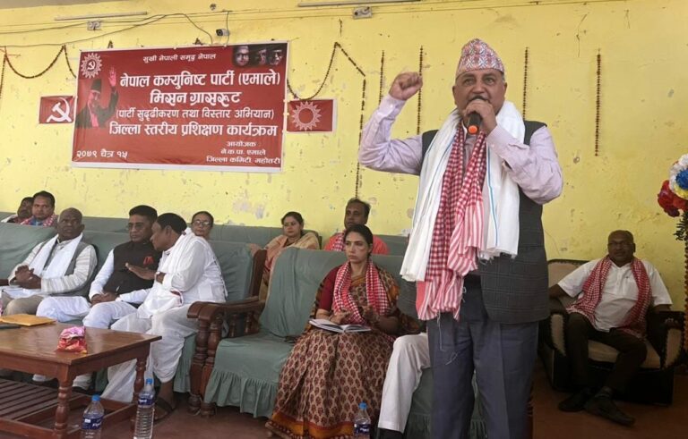 कार्यक्रममा एमालेका केन्द्रीय सचिव तथा मधेस प्रदेश इन्चार्ज रघुवीर महासेठले मधेसबाट प्रतिनिधिसभा र प्रदेशसभामा अहिले पनि आफ्नो दल पहिलो रहेको उल्लेख गर्दै आउने निर्वाचनमा भने स्पष्ट बहुमतसहितको बन्ने दाबी गर्नुभयो । एमाले जिल्ला अध्यक्ष कालीचन्द्र साहको अध्यक्षतामा सम्पन्न कार्यक्रममा पार्टी स्थायी कमिटी सदस्य लालबाबु पण्डित, पोलिटब्युरो सदस्यद्वय जुली महतो र रामदयाल मण्डलले अहिलेको पार्टी अभियान ‘मिसन ग्रासरुट’ बारे प्रकाश पार्नुभएको थियो ।