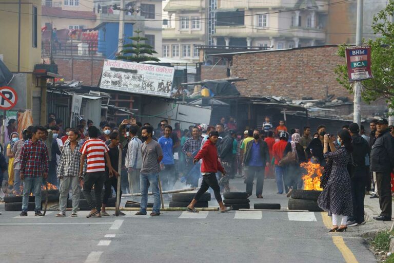 काठमाडौं – गैरी गाउँस्थित सुकुम्बासी बस्तीमा डोजर चलाउने खबर सुनेसँगै स्थानीय विरोधमा उत्रिएका छन्। शुक्रबार काठमाडौं महानगरपालिकाले गैरी गाउँस्थित सुकुम्वासी बस्तीमा डोजर चलाउने खबर सुनेपछि उनीहरु टायर बालेर विरोधमा उत्रिएका हुन्।