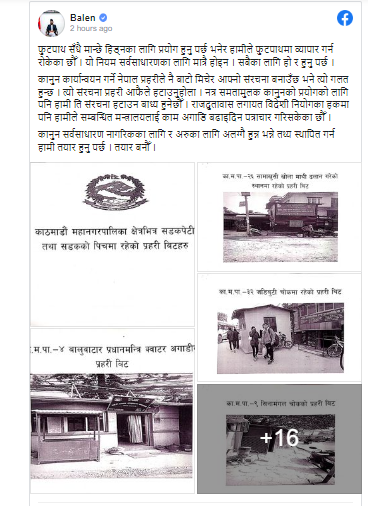 काठमाडौं – काठमाडौं महानगरका प्रमुख बालेन साहले बाटो मिचेर बनाएका संरचना हटाउन प्रहरीलाई आग्रह गर्नुभएको छ ।
