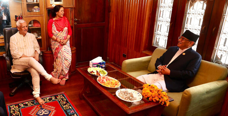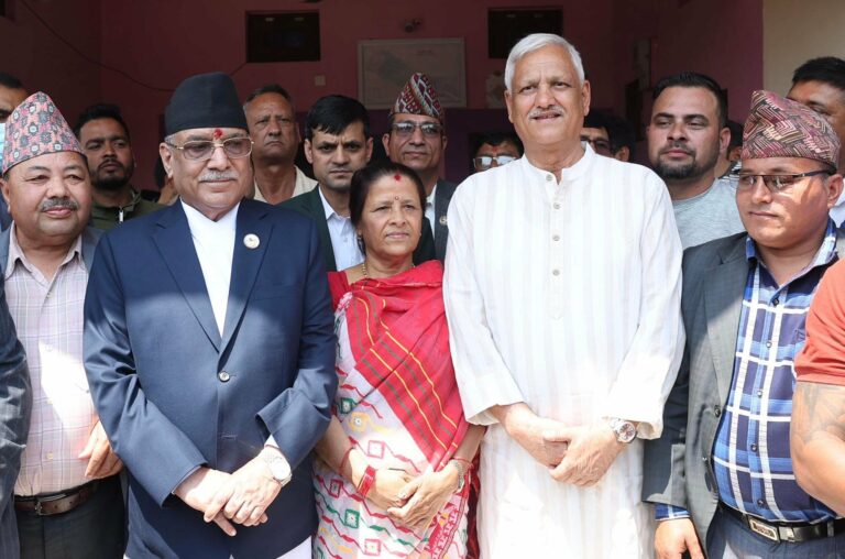 कैलाली – नेकपा (माओवादी केन्द्र) का अध्यक्ष तथा प्रधानमन्त्री पुष्पकमल दाहाल प्रचण्डले नेकपा एमाले सचिव लेखराज भट्टलाईलाई भेट्न उहाँकै निवास पुग्नुभएकाे छ।