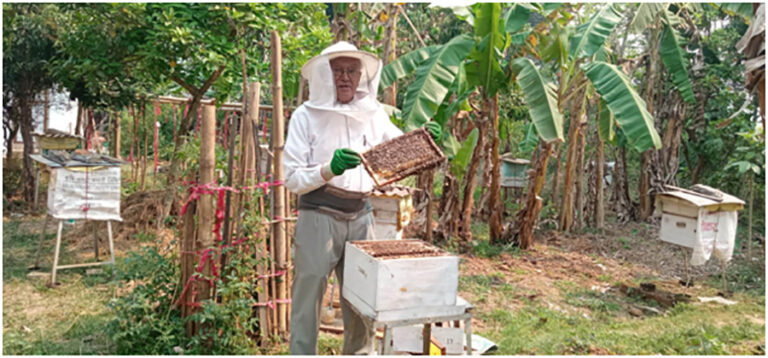 पाल्पा-पाल्पा रामपुरका जयनारायण न्यौपानेको समय बुढ्यौलीमा पनि मौरीको हेरचाह र मह उत्पादनमा बित्ने गरेको छ ।