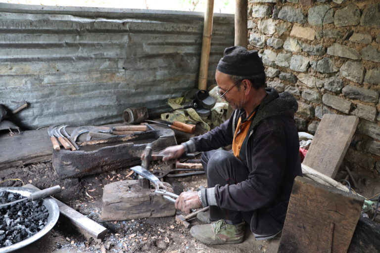 ढोरपाटन – निसीखोला गाउँपालिका-४ झिवाखोला बजार छेउमा पुरानो जस्तापाताले बारेको एउटा सानो छाप्रो देखिन्छ । त्यही छाप्रोमा दैनिकजसो भेटिनुहुन्छ ६४ वर्षीय हिरामान सुनार। अनुहारभरि कालोमोसो लत्पतिएको । एक हातले घन र अर्को हातले पङ्खा घुमाइरहेको भेटिनुहुने हिरामान फलामबाट बन्ने सामान बनाउनुहुन्छ । आरनमै दिन बिताउने सुनारले हँसिया, बञ्चरो, खुकुरीलगायतका सामान बनाउनुहुन्छ।
