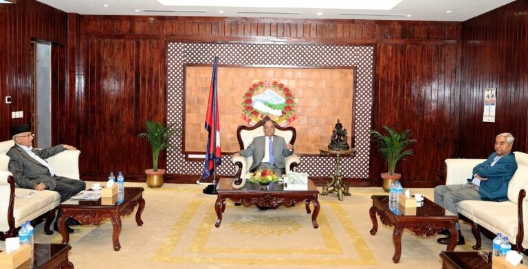 काठमाडौँ-प्रमुख तीन दलका शीर्ष नेताबीच भेटवार्ता भएको छ ।