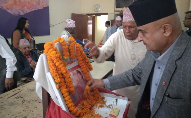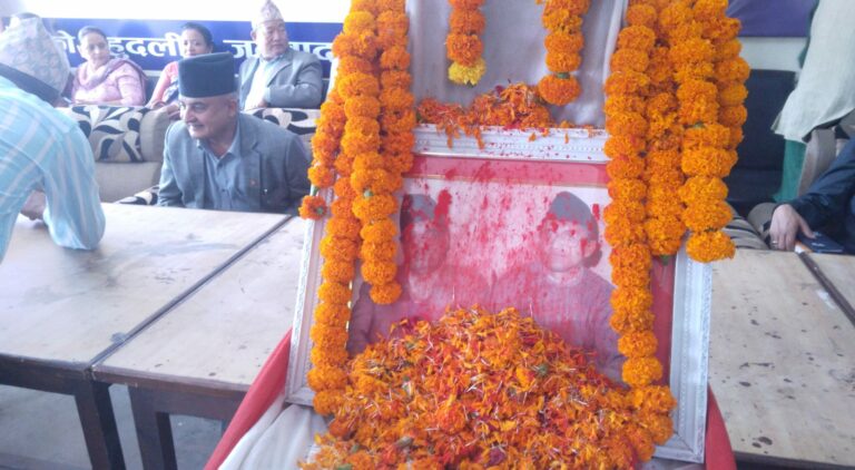 आज मदन भण्डारी फाउन्डेसन र एमाले जिल्ला कमिटी मोरङको आयोजनामा पार्टी कार्यालयमा मदन-आश्रितको तस्बिरमा माल्यार्पण गरिएको हो।