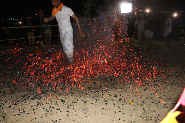 भक्तपुर – मध्यराति आँगनमा बजेको बाजाको आवाज पल्लो गाउँसम्म सुनिन्थ्यो। मध्यरातिसम्म पनि बजेको बाजा सुनेर आफ्नो गाउँको मात्र होइन, वल्लोपल्लो गाउँका मानिसहरुसमेत आगोको भुङ्ग्रोमाथि नाच हेर्न साँझ ढल्किएदेखि नै भेला भएका थिए।
