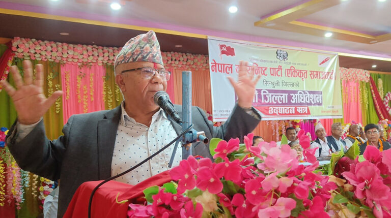 शनिबार सिन्धुलीमाडीमा एकीकृत समाजवादी सिन्धुलीको सातौं जिल्ला अधिवेशनको उद्घाटन गर्दै अध्यक्ष नेपालले प्रतिनिधिसभा र राष्ट्रिय सभामा आफ्नो सिट संख्या जोड्दा चौथो शक्ति रहेको जिकिर बताउनुभयो । थोरै सिट भनेर नहेप्न उहाले सत्ता गठबन्धनलाई चेतावनी दिनुभएको छ ।