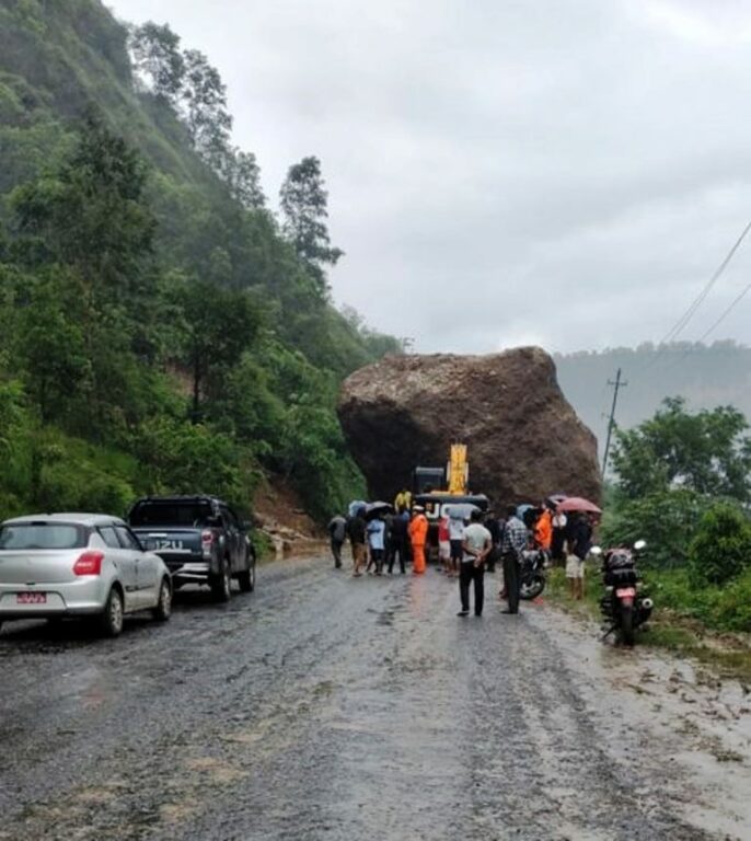 पोखरा – पर्वतको मोदी गाउँपालिका–६ स्थित महभिरमा सडक माथिबाट ढुङ्गा खस्दा मध्यपहाडी राजमार्गको पोखरा–पर्वत खण्ड अवरुद्ध भएको छ । गए रातिदेखि परेको भारी वर्षाका कारण बिहानपख भिरबाट सडकमा ढुङ्गा खसेर पुरिएको हो । अवरुद्ध सडक खुलाउनका लागि जेसिबी र सुरक्षाकर्मीलाई परिचालन गर्ने तयारी भइरहेको पर्वतका ट्राफिक प्रहरी प्रमुख सुमन न्यूरेले जानकारी दिनुभयो ।